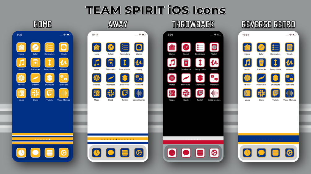 Packs are available to create the look of four jersey themes: the current Home and Away, a Throwback jersey and the new “Reverse Retro”. You can purchase a single Jersey Pack for $10, or the complete Team Kit which includes all four Jersey Packs for $28. Each Jersey Pack includes a matching wallpaper and step-by-step instructions for customizing your app icons.