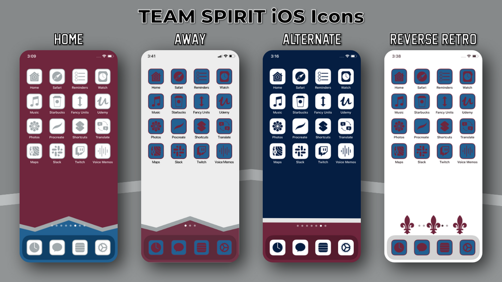 Packs are available to create the look of four jersey themes: the current Home and Away, an Alternate jersey and the new “Reverse Retro”. You can purchase a single Jersey Pack for $10, or the complete Team Kit which includes all four Jersey Packs for $28. Each Jersey Pack includes a matching wallpaper and step-by-step instructions for customizing your app icons.